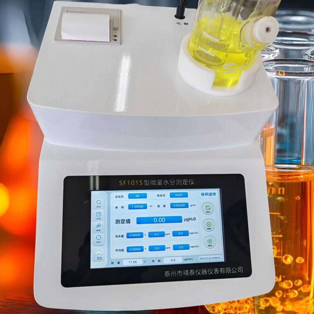 SF101S液压油微量水分分析仪、油微水测试仪、油中含水分析仪是新上市的升级款水分测定仪,采用卡尔费休库仑法(又名电量法)——国际公认的测定物质水分含量精确度蕞高的方法,专测各种液压油、变压器油、润滑油、绝缘油、液体油类样品微量、痕量水分。仪器采用STM嵌入式处理器,数据运行速度更快更稳定,提升检测精度达到0.01ug,仪器升级配置了7英寸高清IPS全视角彩色电容屏,界面简洁,反应灵敏,可一键快速出结果。仪器检测精准、快速、性能稳定,符合多项国家标准,适用于大部分液体、气体、固体物质中水分的测定,广泛应用于石油、化工、电力、医药、农药、矿物、电池、塑胶、制冷、机械、电子等行业及科研院所。